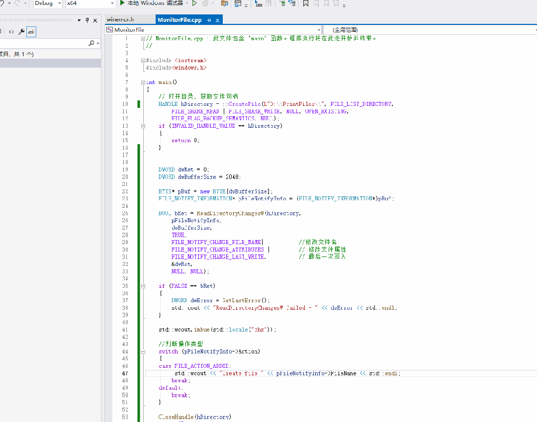 最近在做虚拟打印机时,需要实时监控打印文件的到达,并移动文件到另外的位置。一开始我使用了线程,在线程里去检测新文件的到达。实际上Windows提供了一个文件监控接口函数ReadDIrectoryChangesW。这个函数可以对所有文件操作进行监控。