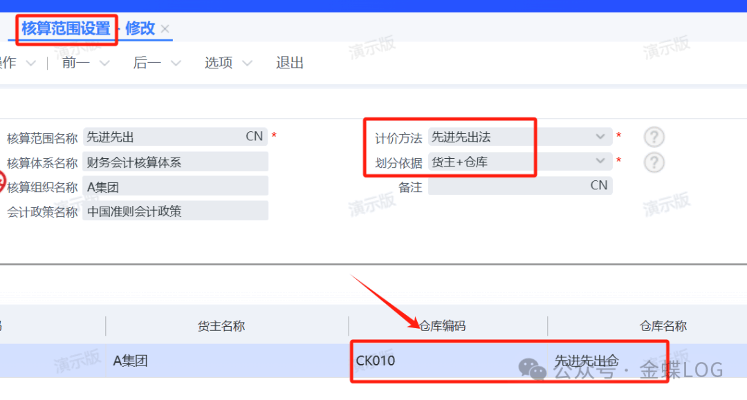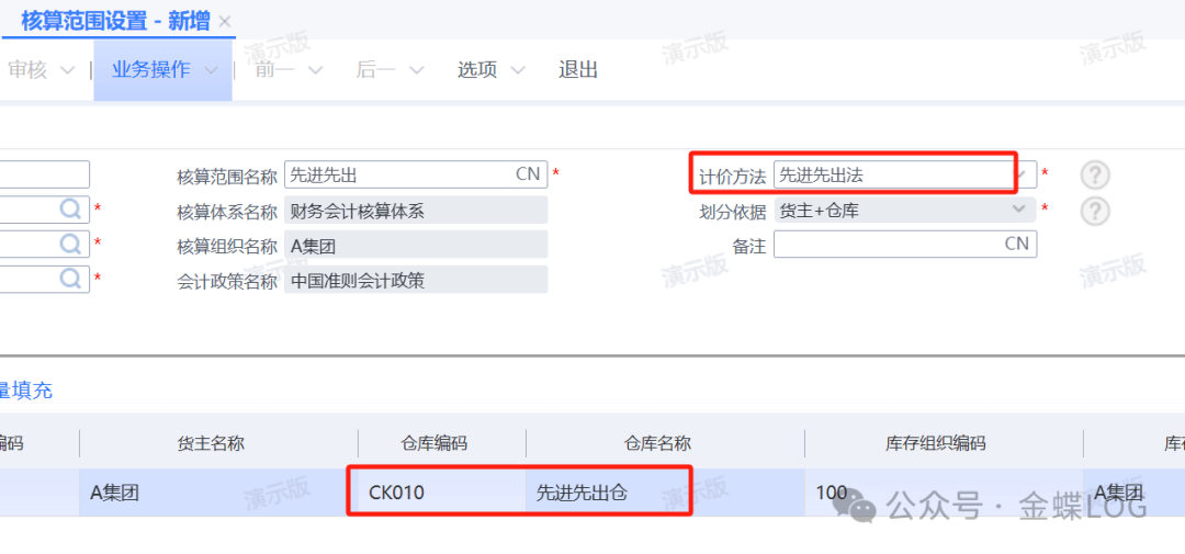 ②先进先出的核算范围新增。
