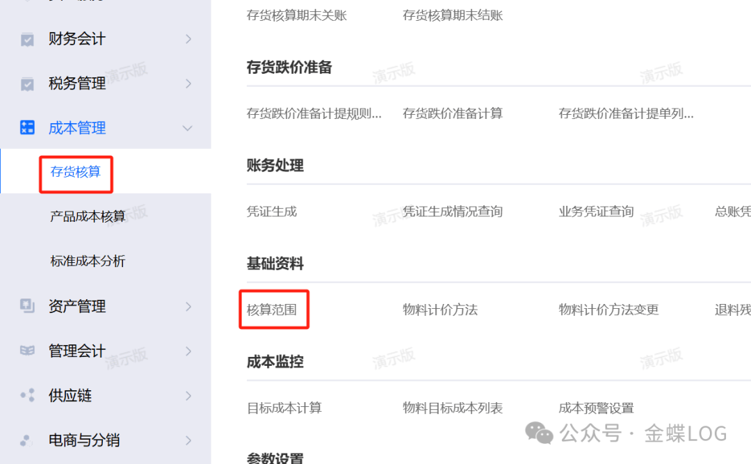 路径:成本管理-存货核算-核算范围