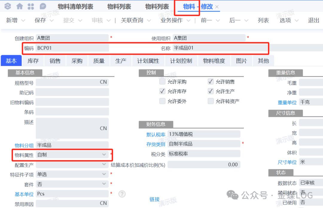 • 运算前:该物料的物料属性是被定义为【自制】或【委外】。