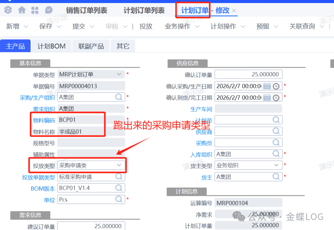 简单来说,供应类型决定了MRP/MPS运算后,物料生成的计划订单的【投放类型】采购、生产还是委外