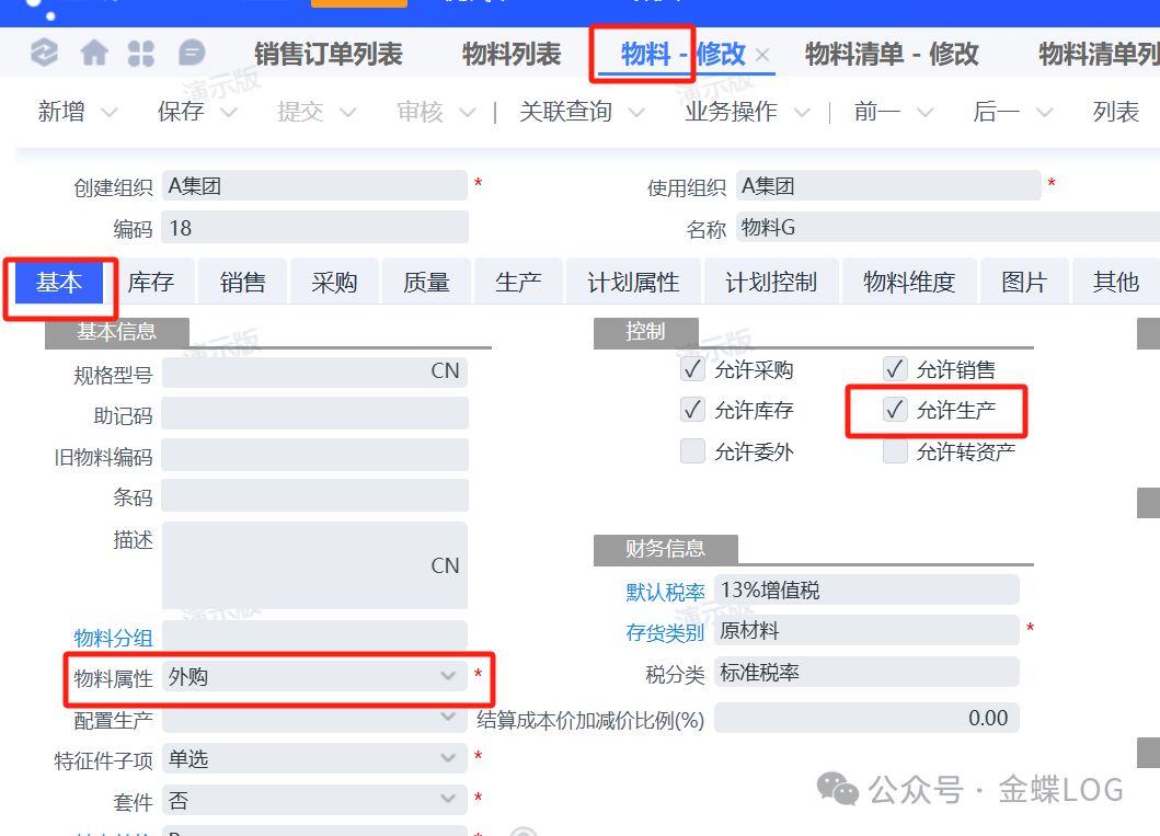 虽然说物料信息勾选【允许生产】之后,物料清单中【供应类型】无法选择【自制】或【委外】,但是手工直接新增的生产订单还是可以选到这颗料的,只是不能通过计划运算产生【生产】或【委外】类型。