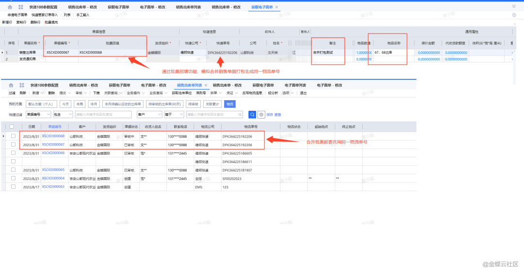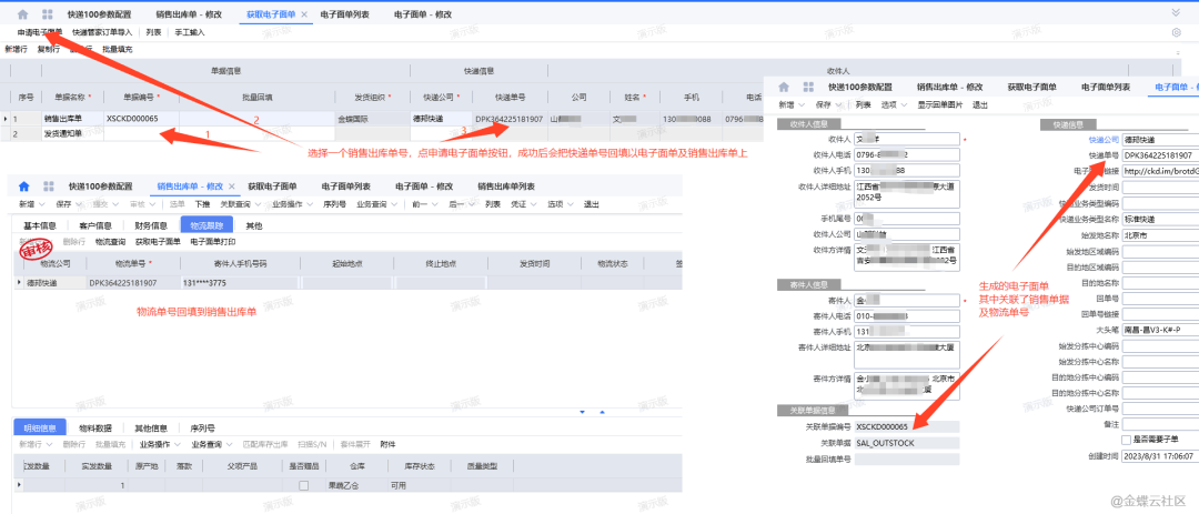 [点晴模切ERP]金蝶云星空销售出库单对接快递100物流三种不同方式打印电子面单