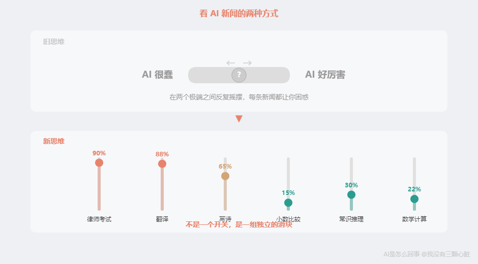 • "AI 通过了律师考试!"→ 好厉害!/好可怕!