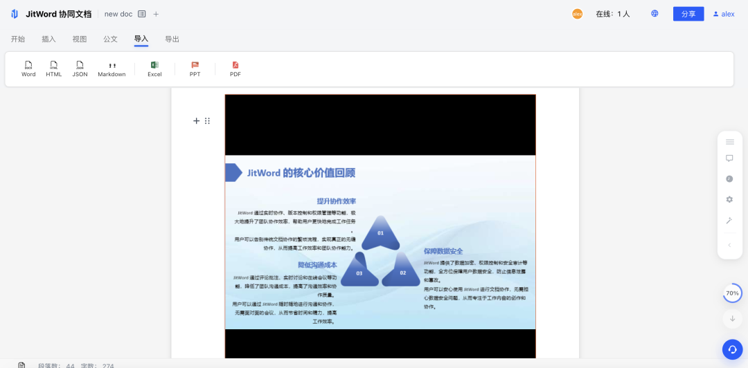 技术实现上,我们实现了内容多类型的混合排版,让Word能力得到了进一步增强。 三、实际应用场景:这些功能到底能干嘛?场景1:项目汇报文档(PPT嵌入)以前:写Word汇报 → 插入PPT下载链接 → 领导下载 → 打开查看 → 忘记刚才Word看到哪了 现在:Word里直接嵌入PPT预览,边写说明边看幻灯片,上下文不丢失