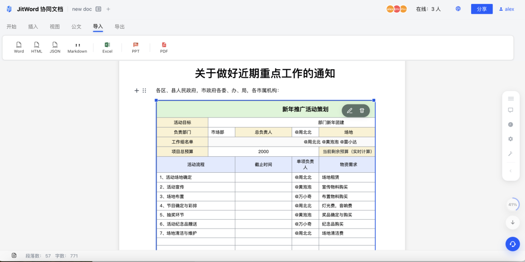 说实话,Office 预览这个需求听起来简单,实现起来却是个"硬骨头": 我们的目标很明确:在 JitWord 文档里,PDF/Excel/PPT要像"原生内容"一样流畅预览,还能和文字、图片、脑图混搭排版: