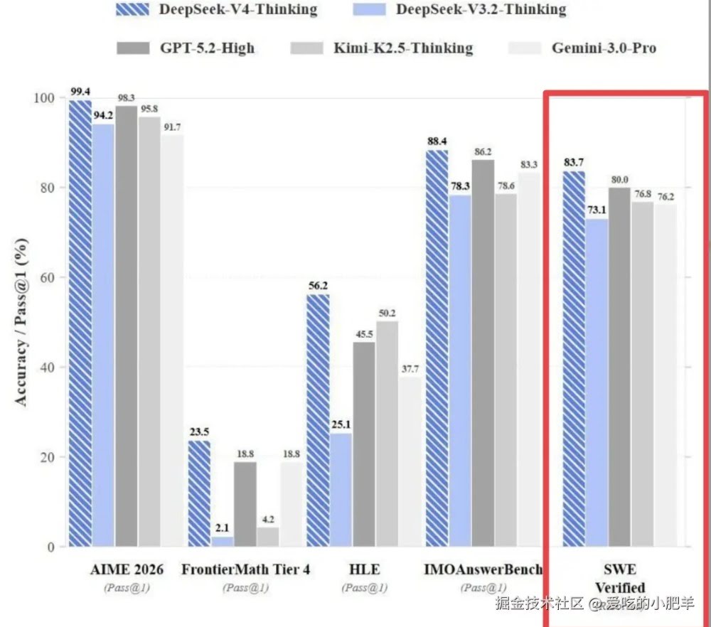 第二组是"Xbox 360 手柄"。 但让大家最在意的,其实不是这组对比本身。 是这个对比的背景:V4 Lite 是非思考模式,V3.2 是思考模式。 一个没开深度思考的轻量版本,干翻了开着思考链的上一代旗舰。 有个网友的话我觉得说得很准:"轻量版不是功能弱,是成本更低。这是个成本优化的强力产品。" 还有一个细节值得单独说。 路透社报道,DeepSeek 已经把 V4 的提前访问权,给了华为等国内芯片供应商。 目的是让他们有时间提前优化处理器软件,确保模型能在国产硬件上跑起来。 英伟达和 AMD,还没拿到。 这个事情怎么解读,见仁见智。 但有一点是挺明确的:DeepSeek 在发布之前,把国内的底盘先打稳了。 关于完整版 V4,目前流传的信息比较杂,可信度也参差不齐。 有开发者猜测参数量小版本在 2850 亿左右,大版本可能到 1.4T 甚至 1.5T 万亿级别。 编程能力据称是这次最核心的突破方向,有泄露的基准测试截图显示在 SWE-bench Verified 上的得分超过了 Claude 和 GPT 系列