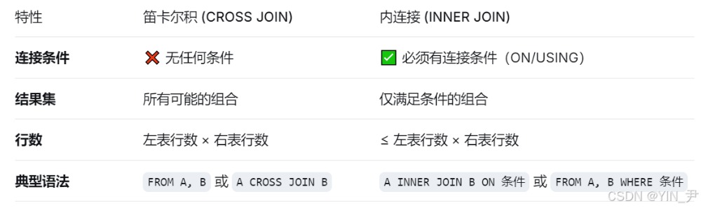 总结一下笛卡尔积和内连接的区别: