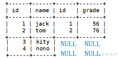 观察一下这两张表会发现:学生表中有四名学生,成绩表中有三名学生的成绩。但是不是学生表中每个学生都有成绩,且不是成绩表中的每个学生都出现在学生表中。