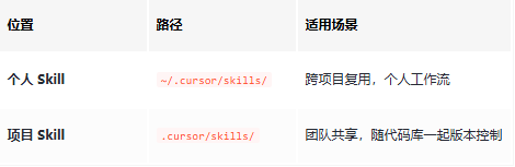 注意:~/.cursor/skills-cursor/ 是 Cursor 内置目录,别往里放自定义 Skill。