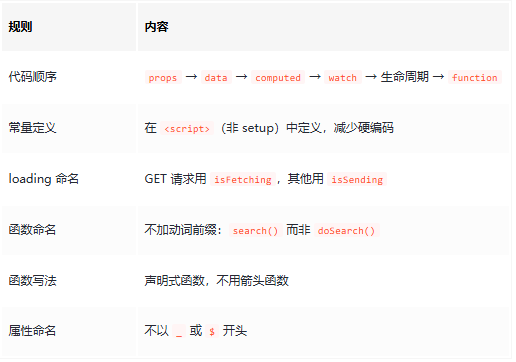 函数命名、loading 命名、属性命名等规则。当编写或审查 *.vue 文件代码