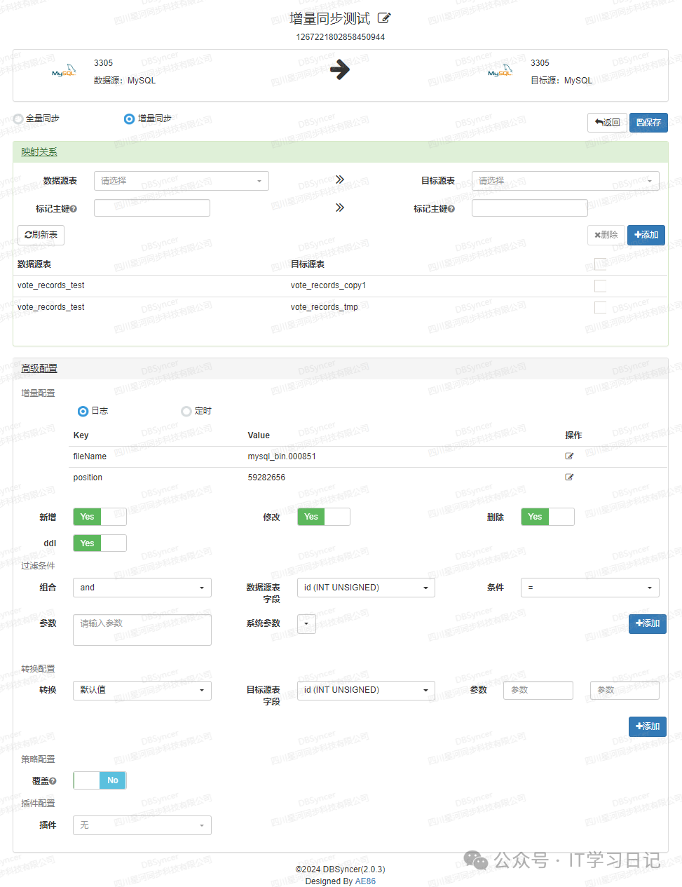 Db-Syncer是一款功能强大的开源异构数据库同步系统,支持MySQL、Oracle、SQL Server、PostgreSQL、Elasticsearch(ES)、Kafka、File、SQL等多种数据源之间的增量和全量同步。系统内置实时监控、数据同步状态、性能指标、系统日志、性能预警等功能,支持插件式拓展,可通过插件自定义数据同步转换逻。
