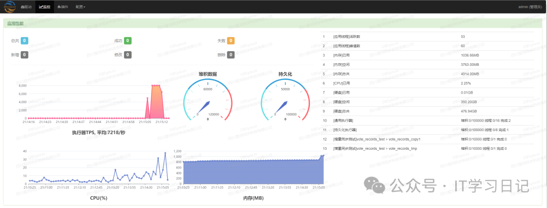 内置实时监控面板:展示同步任务状态、TPS(每秒事务数)、延迟指标及错误日志等核心指标,方便用户实时掌握同步情况