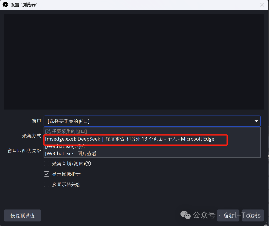 分辨率选择最高,帧率选择优先60。 ![]() ![]() 2.录像路径设置 录像路径默认C盘,不利于磁盘空间使用,更改成数据盘。 更改路径:右下角“设置”->“输出”->“录制”->“录像路径” ![]() 一、全窗口录屏(最基础级录屏)1.新建录屏场景 左下角场景点击“+”新建,自定义场景名称 ![]() ![]() 2.新建源 全屏录制新建源选择“显示器采集”,显示器选择录制的显示器 ![]() ![]() ![]() 3.设置完成,开始录制 点击右下角“开始录制”,也可以设置“开始录制”、“暂停录制”和“结束录制”的快捷键,方便快捷(设置顺手的快捷键,记住不要和其他软件快捷键冲突了哦)。 ![]() ![]() 二、特定程序录屏(进阶式录屏)1.同样新建录屏场景后,新建源,本次源选择“窗口采集” ![]() 2.窗口采集源名称 ![]() 3.选择浏览器的进程作为采集窗口 ![]() 4.3.设置完成。 点击“开始录制”即可单独录制浏览器的内容,即使弹出微信电话、切换电脑画面也不会中断录制画面。 ![]() 三、多源录屏(进阶式录屏)1.结合一二设置的采集源,可以根据需要点击此处展示。 ![]() 2.通过调整源的位置达到多源录制的效果,甚至通过灵活采集不同程序三开,四开,五开。 ![]() 小贴士音频也是可以自由切换的哦!不需要麦克风的音频直接点击小喇叭即可,避免录入杂音,后期写好台本录入更方便。 ![]() 阅读原文:原文链接 该文章在 2026/3/9 11:35:31 编辑过 |