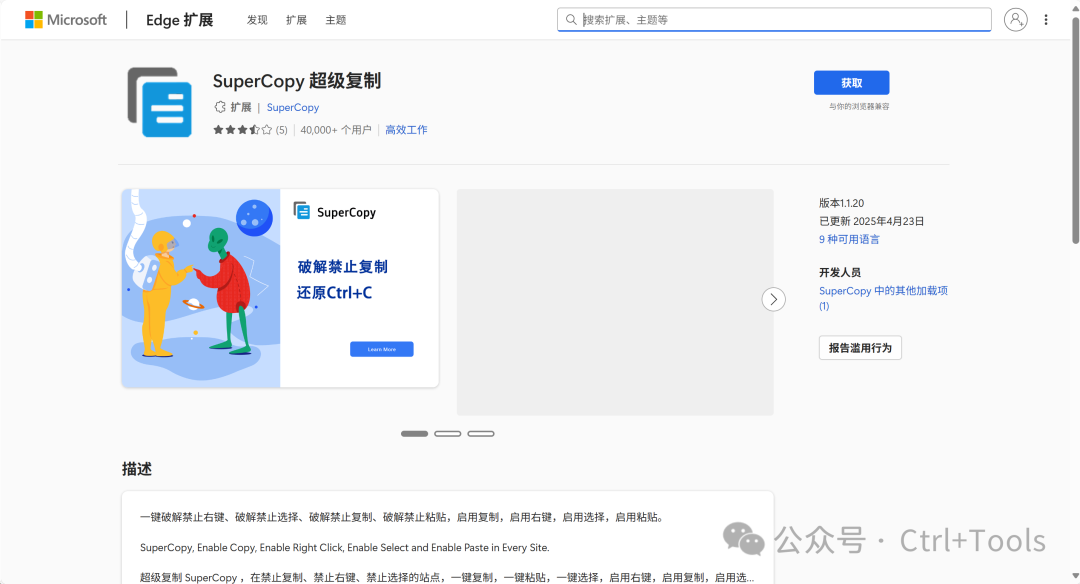 今天推荐的实用工具——SuperCopy 超级复制,这是一款浏览器插件,支持谷歌浏览器、Edge浏览器。主要功能是通过破解js、css来达到一键复制,一键粘贴,一键选择,启用右键,启用复制,启用选择,启用粘贴!