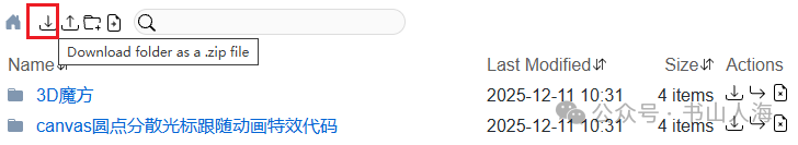 1. 可以发现确实多了很多功能,例如可以点击下载,这个下载是指将整个文件夹打包成zip格式一次性全部下载下来。