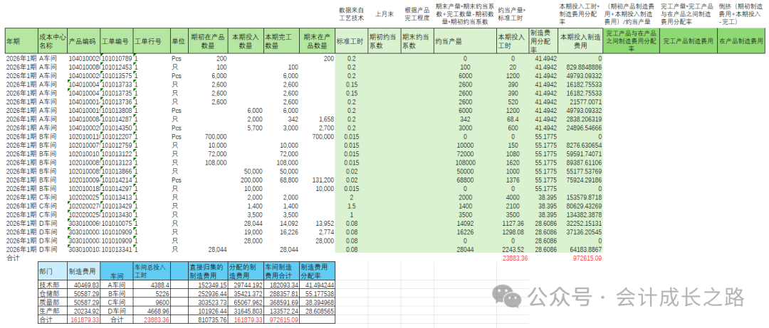 此示例仅作为制造费用分摊逻辑展示,使用ERP的企业,只要成本模块上线时基础设置好,在第2步费用引入核对正确,成本计算完,系统会自动分配。以下数据非真实。