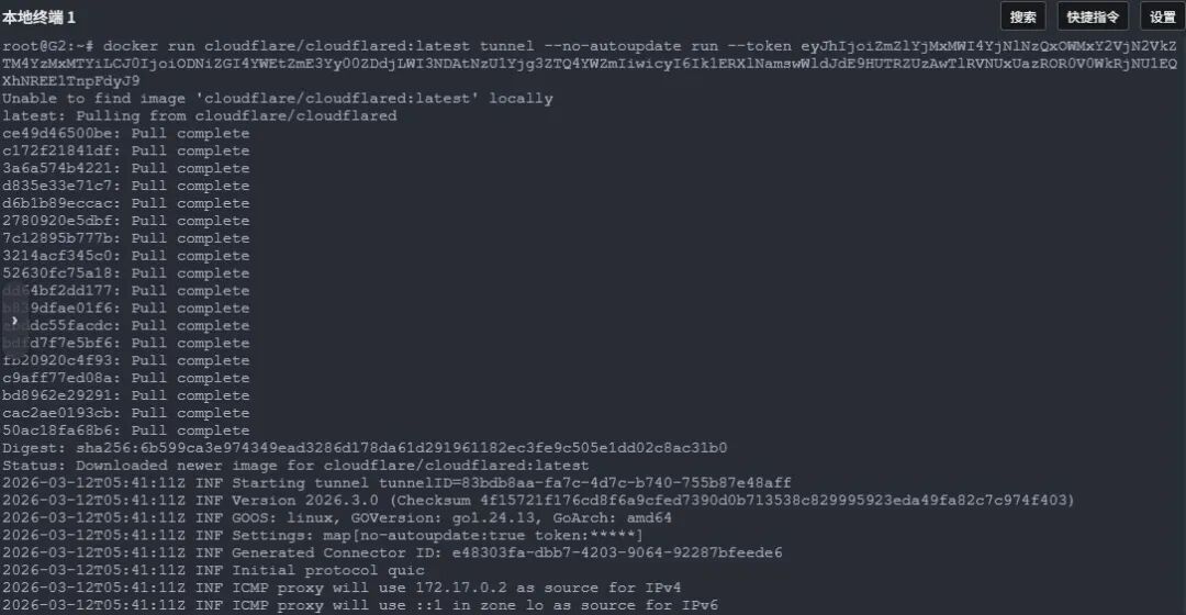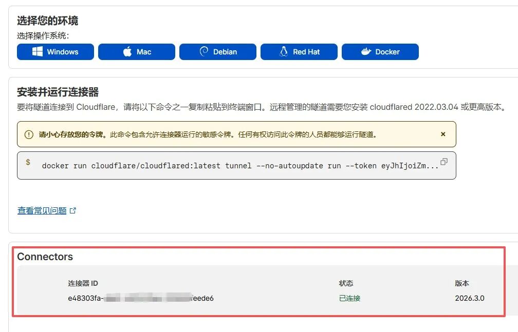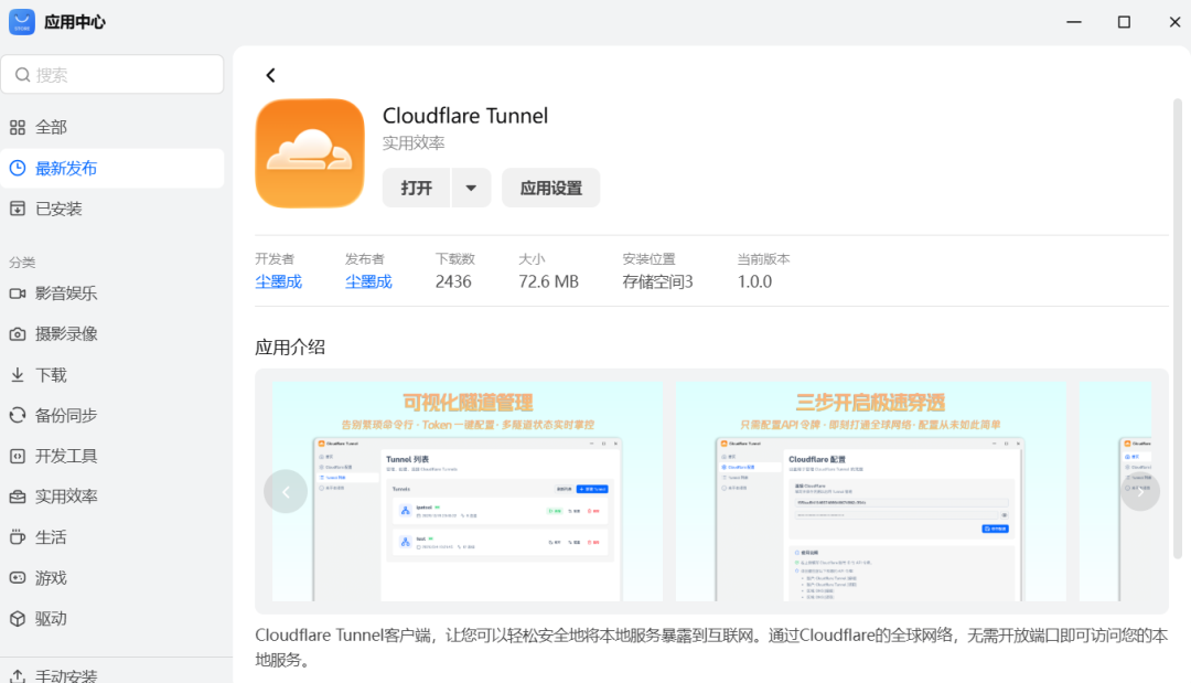 如果是飞牛OS直接在应用商店安装Cloudflare Tunnel应用,可以使用可视化界面(不推荐)。