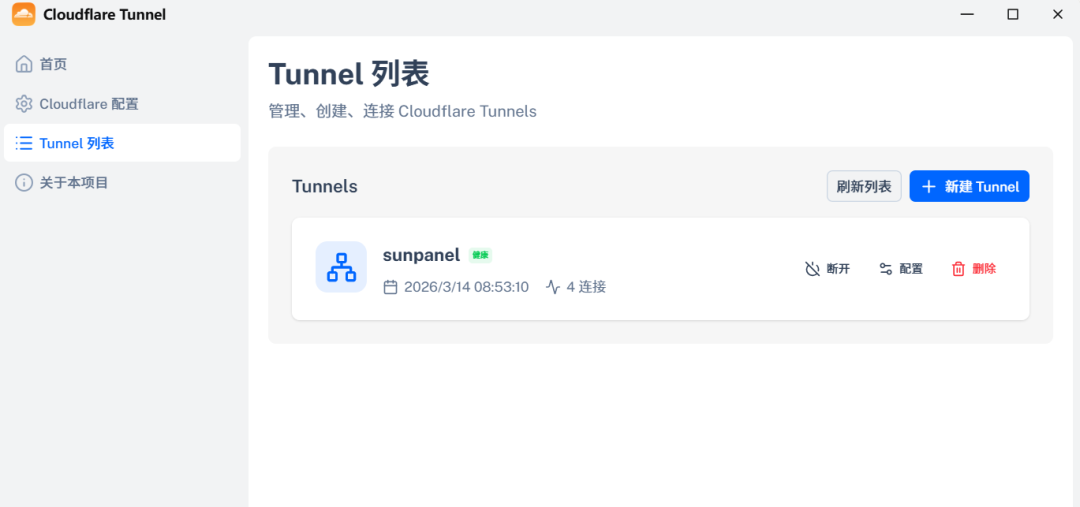 2. 稍作等待,页面下方就会显示已连接的隧道