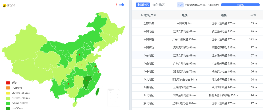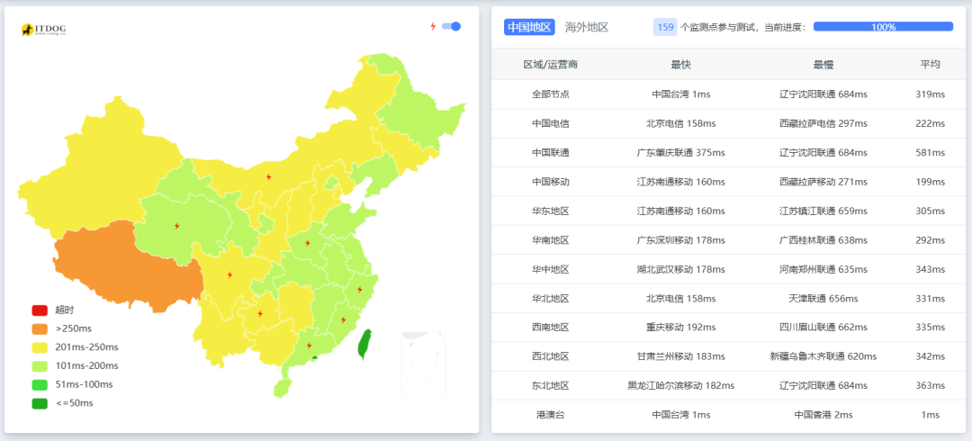 1. 先测个速,延时还是挺高的,应用类的服务基本就不太能用了