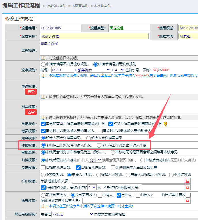 已经发出的工作流申请禁止修改申请内容,这个和发出去的Email禁止修改是一个道理。 在工作流模板设计中,管理员可以设置是否允许申请人作废本人发出的工作流申请: 如果设置为了允许申请人作废工作流申请,那么申请人在提交工作流申请后发现有问题时,可以直接作废已经发出的工作流申请,然后重新申请即可; 如果设置为了禁止申请人作废工作流申请,那么申请人在提交工作流申请后发现有问题时,只能通知管理员删除有问题的工作流申请,然后重新申请即可。 该文章在 2026/3/31 10:57:30 编辑过 |