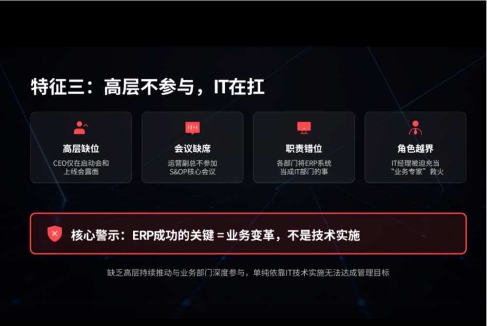 CEO只在启动会和上线会露面,之后就不管了;各部门负责人都觉得ERP是IT部门的事。