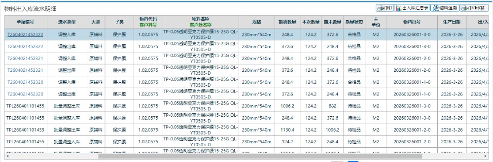 可以通过物料代码以及对应物料批号进行筛选查询,同时勾上质量状态查看对应情况。