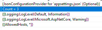 查找 Logging:LogLevel:Default 时,并不需要先定位 Logging 再往下查找 LogLevel ,而是直接使用字符串 Logging:LogLevel:Default 作为 Key 从配置字典中查询对应的 Value。
