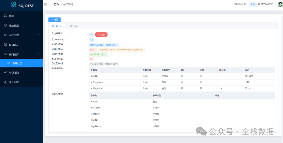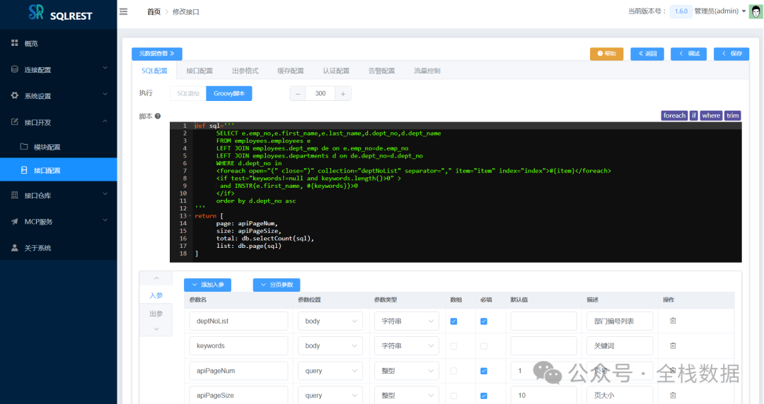 在Web开发的世界里,我们似乎总在重复着相似的剧本:设计好数据库表结构,然后便是无穷无尽的Controller、Service、Mapper三层架构代码编写。哪怕只是一个简单的增删改查接口,也得按部就班地走一遍流程。这种“体力活”不仅消耗着开发者的热情,也拖慢了项目的迭代速度。 有没有一种可能,让我们从这些重复劳动中解放出来,更专注于核心业务逻辑的设计? 今天,就给大家介绍一款来自Dromara开源组织的宝藏项目——SQLREST。它是一款免费开源的低代码工具,核心理念就是“SQL秒变API”,旨在帮助开发者快速构建RESTful接口,将我们从繁琐的CRUD编码中解放出来。 1 系统简介 SQLREST,顾名思义,它的核心能力就是将SQL操作直接转化为RESTful API。你不再需要为每个数据表编写大量的样板代码,只需在SQLREST的界面上配置好数据源,编写你的SQL语句(甚至支持MyBatis的动态SQL语法),简单设置一下接口路径和参数,一个功能完备、符合RESTful规范的API接口就诞生了。 它就像一个强大的“API工厂”,输入是你的SQL,输出就是可以直接被前端或其他服务调用的HTTP接口。对于需要快速交付的中小型项目、数据中台的数据共享场景,或是需要将数据库能力快速暴露给外部的需求,SQLREST无疑是一把利器。 定义接口 修改接口 接口测试 接口文档 接口详情 MCP服务 2 系统特点 SQLREST之所以能吸引众多开发者的目光,主要得益于以下几个鲜明的特点: