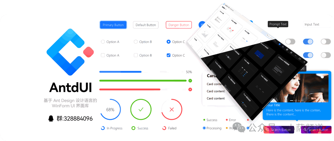 WinForm开发者,最怕听哪句话?不是"这个需求要改",不是"发布又报错了",而是—— “这界面太丑了,换一套。” 换一套?WinForm就长这样。按钮是灰的,输入框是白的,表格是土的。你跟产品说这是微软亲儿子,人家回你一句:亲儿子长这样? 但有一群人,不服气。 他们把Ant Design的设计语言,搬进了WinForm。60多个控件,全部纯GDI绘制,不需要任何图片资源。AOT编译后一个exe,扔给用户直接跑,连.NET运行时都不用装。 这个项目叫 AntdUI。 一、先说清楚一件事:AntdUI,是什么很多人听到"WinForm UI库",第一反应是:又是那种换皮的控件包? 不怪大家有偏见。市场上确实存在大量"换皮"方案——拿别人的图标,改一改颜色,包装成新产品。但AntdUI做的事,本质上不一样。 AntdUI是重写,不是换皮。 它用纯GDI矢量绘图,从底层重新绘制了每一个控件。没有继承TextBox,没有套用系统原生样式,所有界面元素——包括按钮、输入框、表格、弹窗——全部是一行一行代码画出来的。 这意味着什么? 意味着你看到的每一个圆角、每一处阴影、每一个动效,都是代码控制的矢量图形。放大缩小不失真,任意DPI都清晰。没有图片资源,exe体积就是小。 Ant Design设计语言是什么?是蚂蚁金服开源的那套前端UI框架,国内无数Web产品都在用——配色讲究、间距合理、动效舒适。AntdUI做的事,就是把这套美学,完整迁移到WinForm桌面端。 你在Web上见过Ant Design的好看界面,现在,你的WinForm程序也可以长那样。