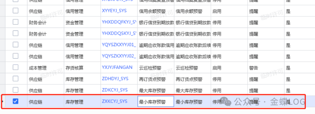 预警功能如果物料勾选了【最小库存预警】,并且监控方案里面启用最小库存预警监控服务。当库存数量低于设定阈值时,系统会自动发送消息提示,告知对应的用户。