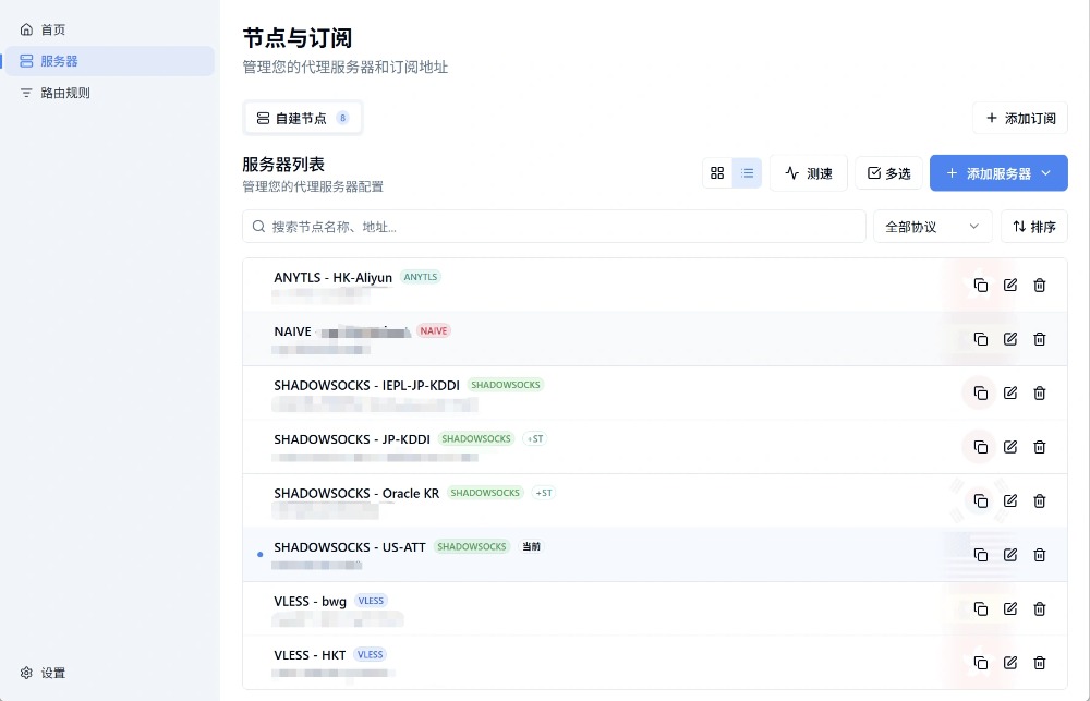 支持 NaïveProxy、VLESS、VMess、Trojan、Shadowsocks、Hysteria2、Anytls、TUIC、Shadows-tls 协议。