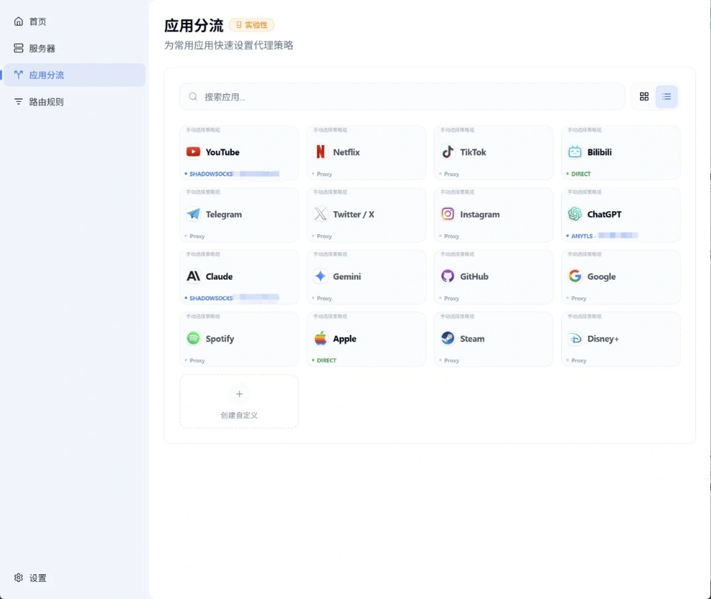 • ✅ 应用分流策略组模块