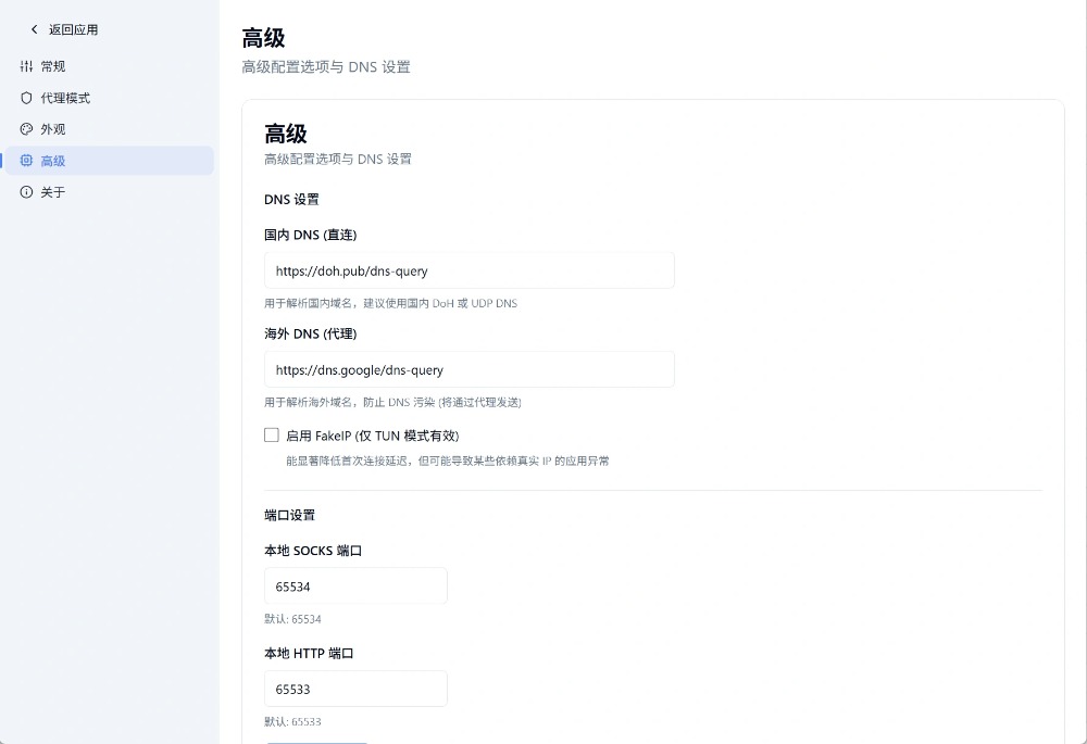 如不希望使用 TUN,可在设置中切换为“系统代理模式”。