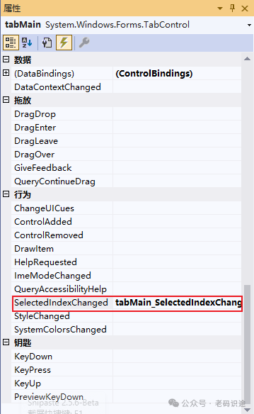 当在TabControl的选项卡之间进行切换时,会触发SelectedIndexChanged事件,可以在此事件中处理需要的业务逻辑,如下所示: ![]() 以下代码将提示当前点击的选项卡的索引号: