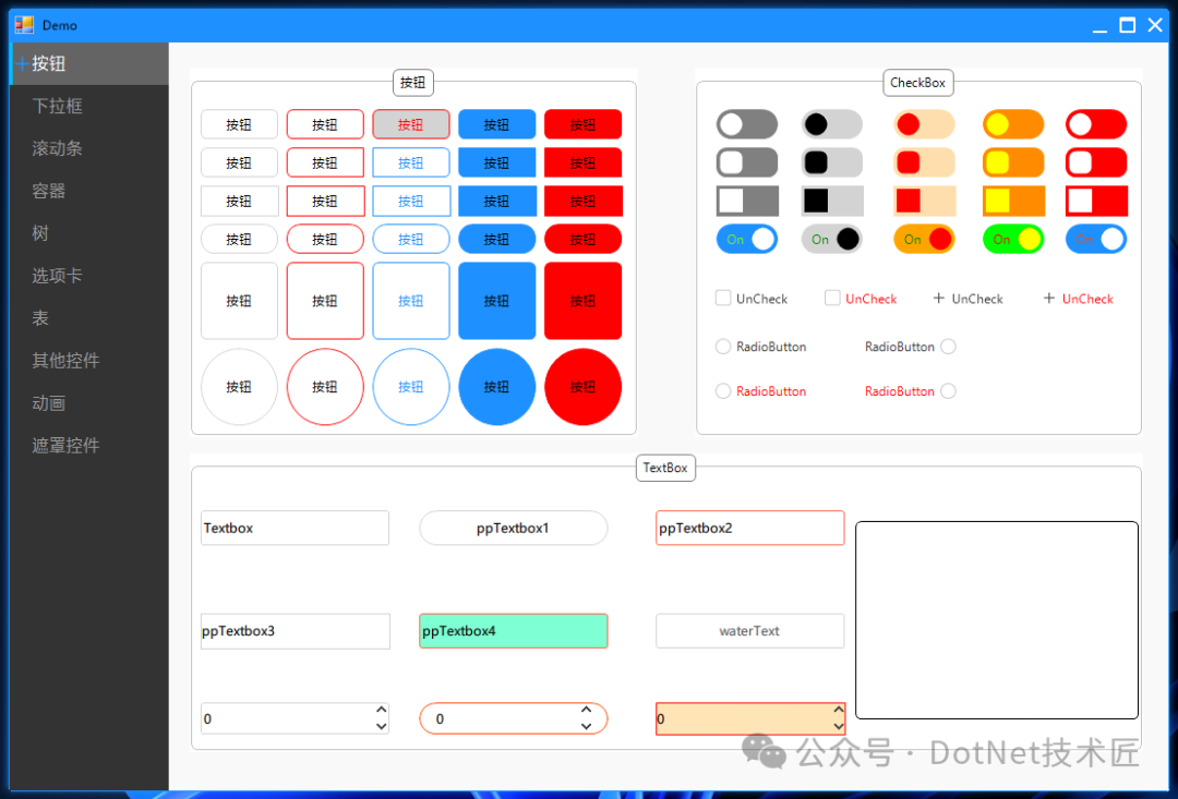 基于WinForm的自绘控件库,以其高度可定制性、丰富的动画效果以及良好的兼容性。通过自定义绘制,成功打破了传统WinForm控件在视觉效果上的局限,为WinForm应用程序带来了全新的界面体验。