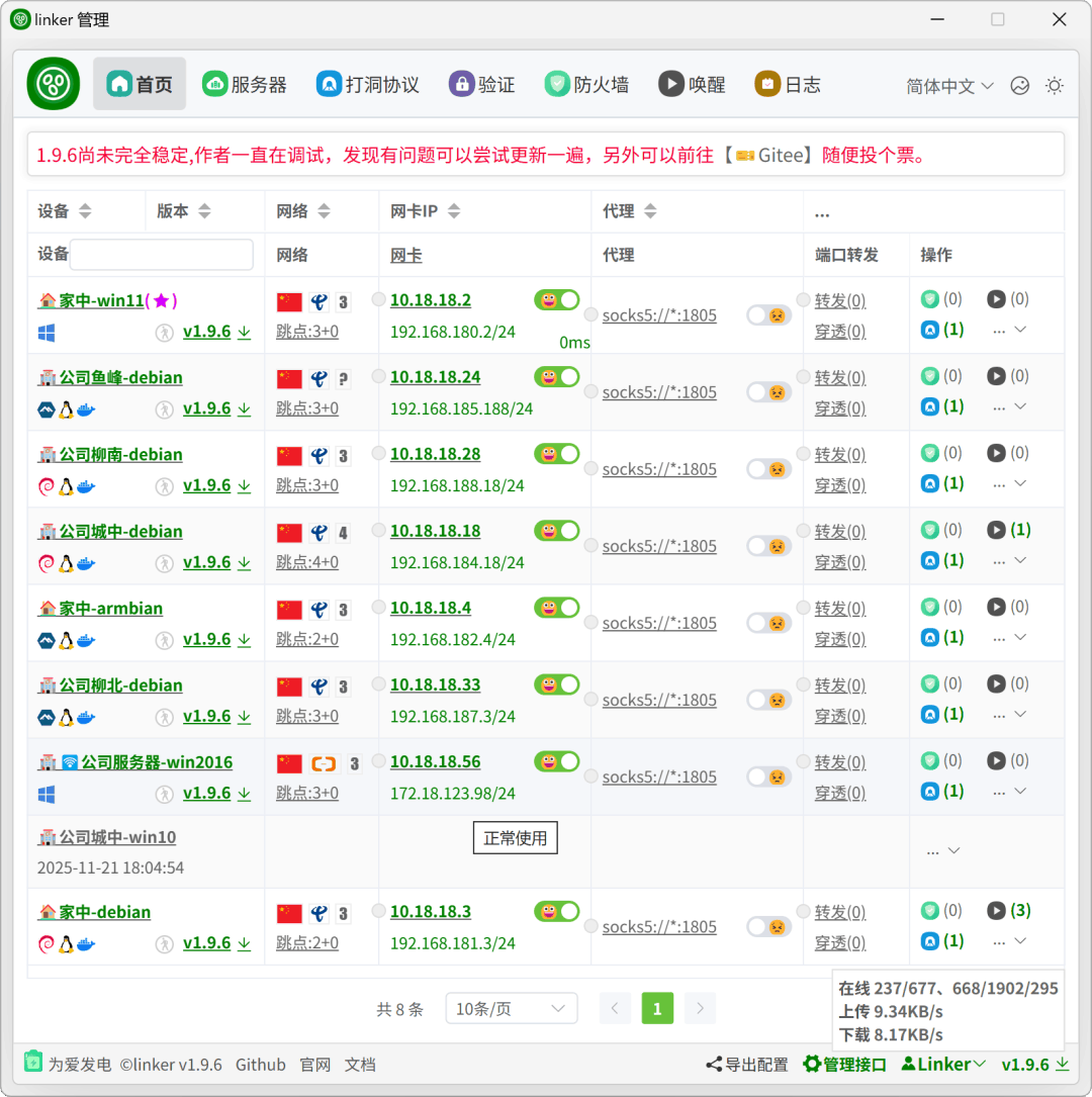 LinkerLinker:让你那些散落在世界各地的联网设备就像在隔壁房间一样轻松访问。基于.NET开发极具特色的,P2P打洞(UDP+TCP、IPV4+IPV6)+服务器转发,实现的异地组网,和内网穿透。打洞中继这些是隧道连接方式。打洞连接:支持TCP、UDP、IPV4、IPV6,内含多种打洞方法,总有一个适合你。中继...