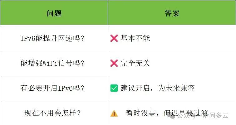 IPv6不是提速工具,而是为解决IP地址枯竭问题而生。它提供近乎无限的地址,支持未来万物互联,但不会提升网速或增强信号。偶尔因路径优化可能略快几毫秒,但日常使用几乎无感。开启IPv6是为兼容未来,而非追求当下速度。你有没有最近在路由器设置里看到“IPv6已启用”?或者听朋友说“升级IPv6后网速飞快”?别急——IPv6...