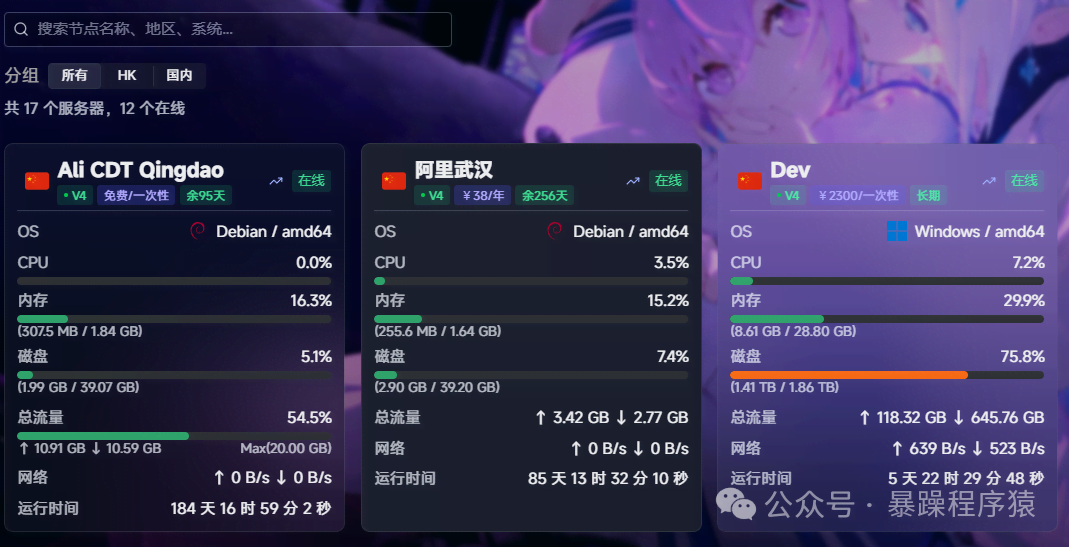 简介Komari是一个轻量级、自托管的服务器监控工具,旨在为用户提供简单、高效的服务器性能监控解决方案。主要功能轻量高效:Komari的资源消耗极低,其代理程序(Agent)在被监控服务器上的内存占用稳定在10MB以内,CPU使用率几乎可以忽略不计(日常维持在0.1%-0.5%)。这使得它能够适应各种规模的服务器环境,...